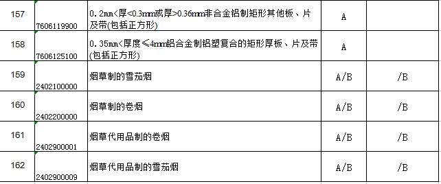二、取消涉及烟草的4个海关商品编码的海关监管条件“A”,检验检疫机构不再实施进境检验检疫监管,仅实施出境检验检疫监管。